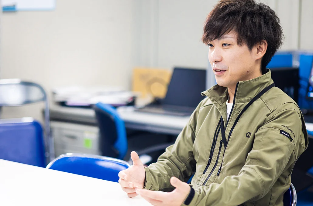 就職活動中、学校主催の企業交流会に参加していた中で当社の存在を知り、施工の実績、同じ学校の卒業生が多く在籍し第一線で活躍している観点から、入社を決意しました。