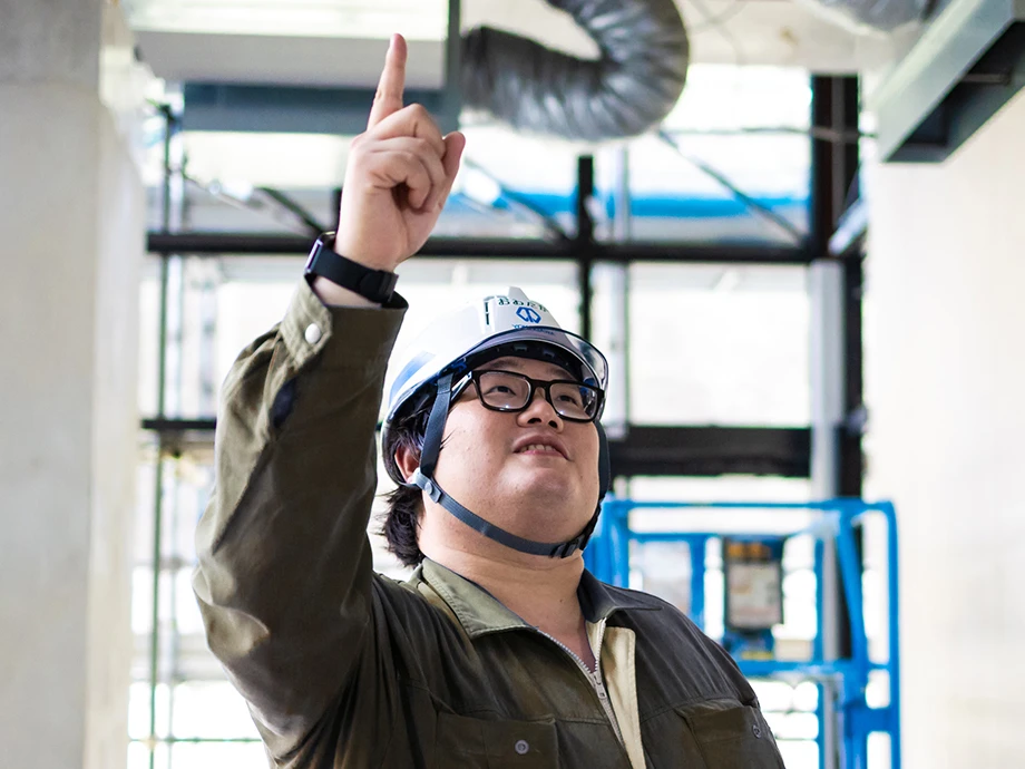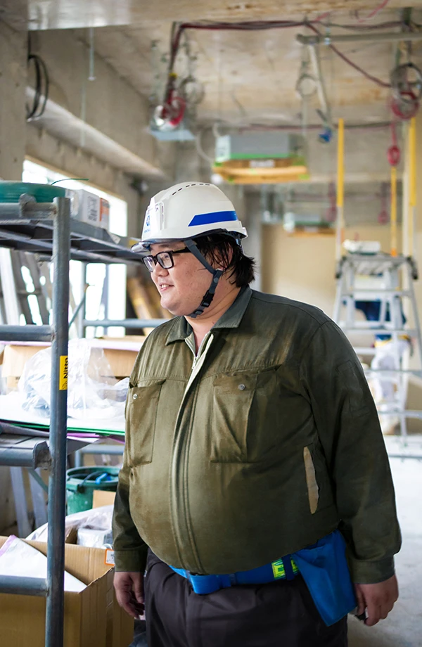 私の現在の仕事としましては、現場内での作業等打合せ及び進捗確認となります。まず進捗確認作業ですが、協力会社の作業を確認することで現状の作業がどのくらいかかるかなど明確にし、また建築や電気業者などの進捗により、協力会社に次の作業に進めるかの指示を行わなければならないので、とても重要な作業と言えます。次に現場内の作業等の打合せについては、進捗確認によって得た情報をもとに現場の進め方の方針が決まります。こちらは状況によってはコミュニケーション能力が必須になるので、私もコミュニケーションが得意なほうではないので苦労するところでもあります。